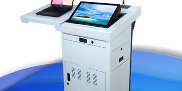 Includes 20/22 inches or above interactive-touch panel. Podium is made of high quality Indian 1.5 mm CRCA sheet (MS) with powder coating. The podium will have both front and back opening access with lock at both end. The podium will have locable space to keep equipment. The top of the podium will have slide , when open to use interactive panel and laptop will be kept on top of slide. The podium will have port to install gooseneck mic-1 no, HDMI port , 1x power input. The podium to have one 3 port electrical spike guard. The podium should have provison for customised customer branding/logo and it will be done on the front of the podium.